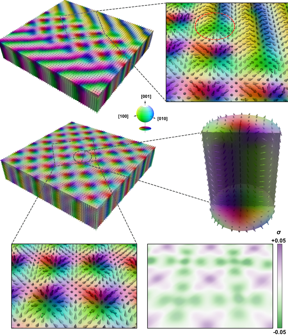 图3波矢干扰稳定极性斯格明子晶体的实验证据