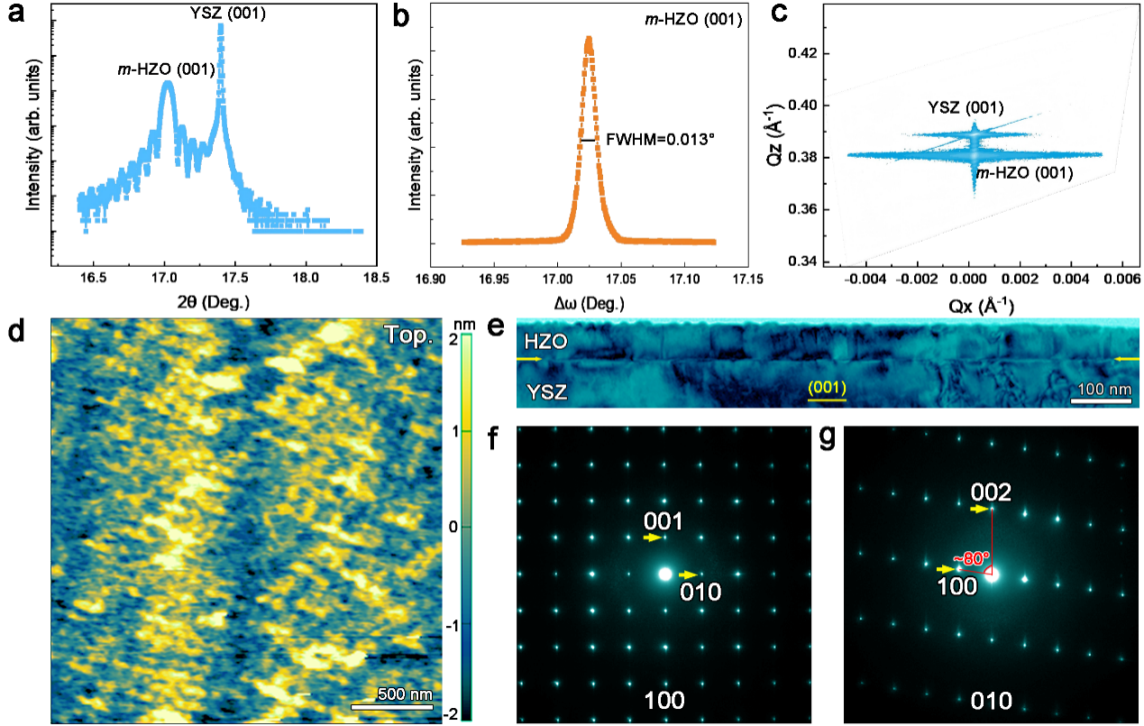 图1 单斜Hf0.5Zr0.5O2单晶薄膜的结构特性