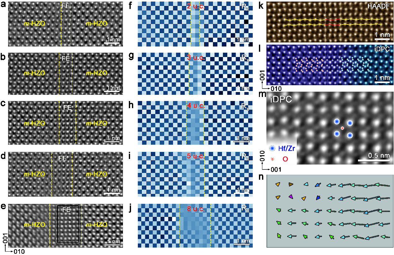 图4 反相畴以单胞尺度连续扩展,进而稳定出新型极性单斜相